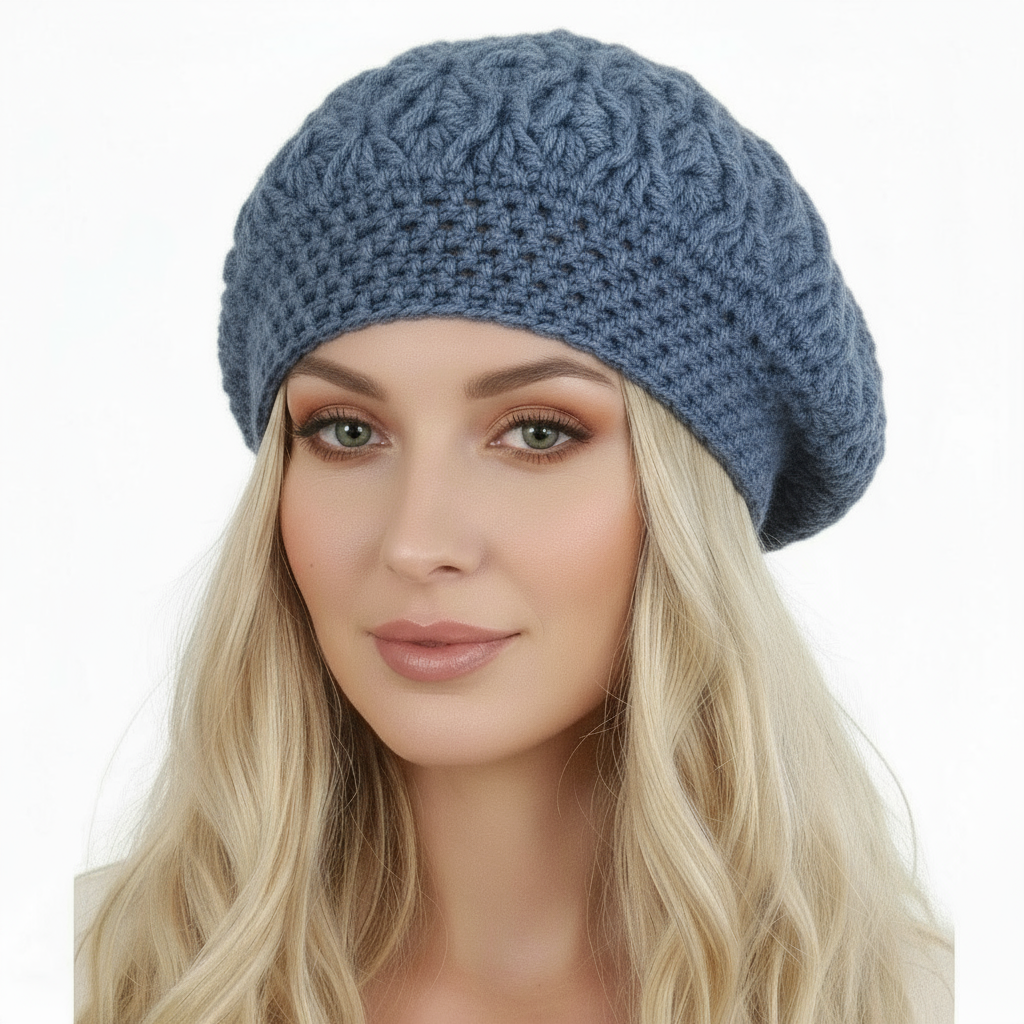 Wear this wonderful handcrafted hat and let yourself be wrapped in its soft wool. Made with love and care, each stitch has been hand-woven with skill and precision. Its denim blue color is perfect to complete your romantic and feminine look.