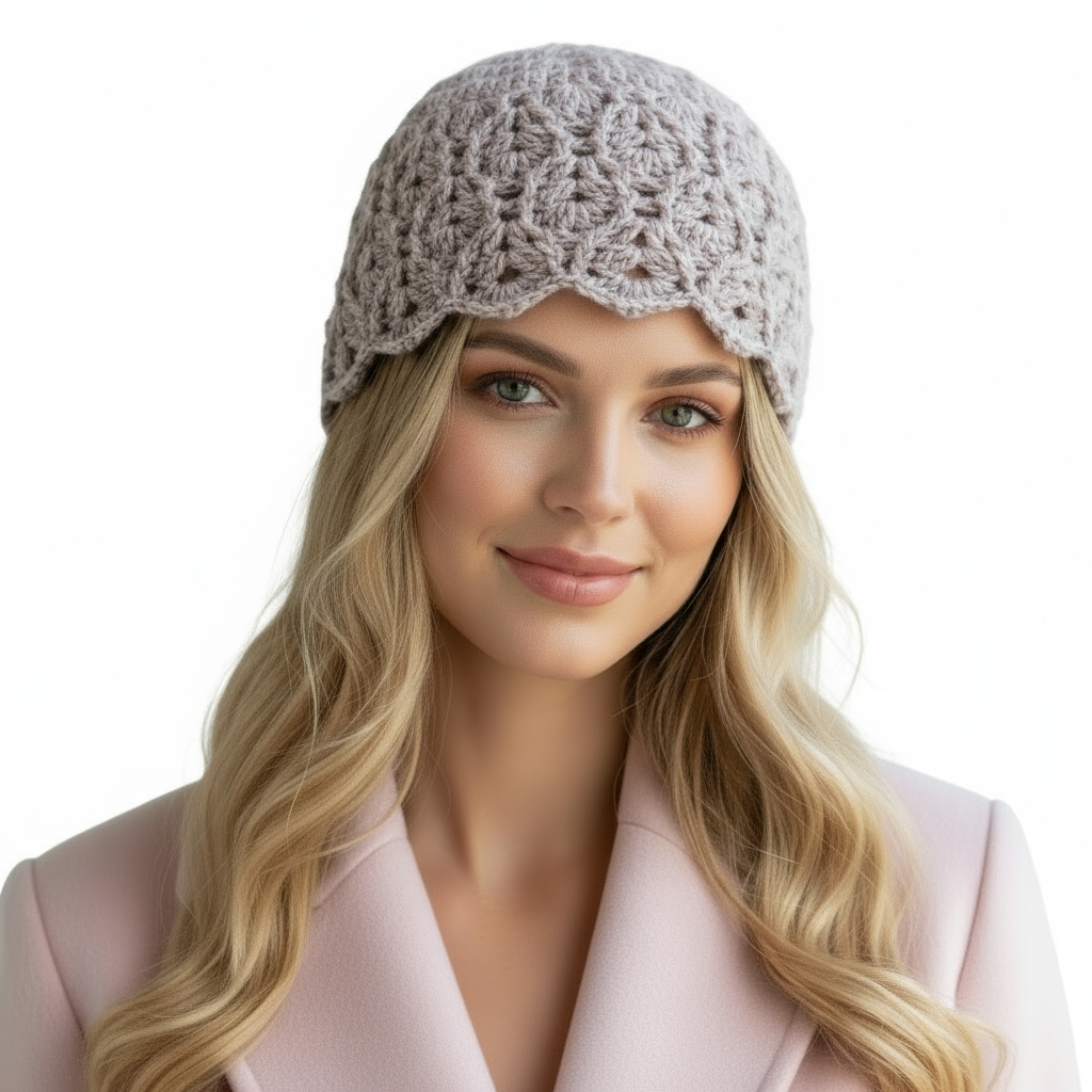 Women's wool INTRECCI handcrafted crochet cap. MELANGE GRAY
