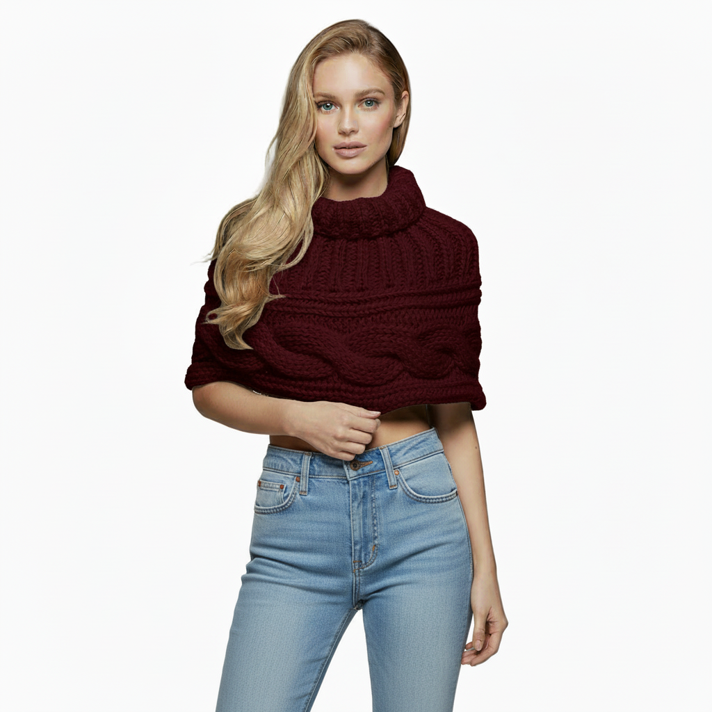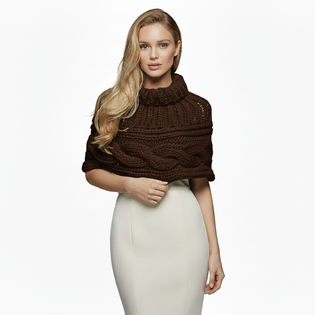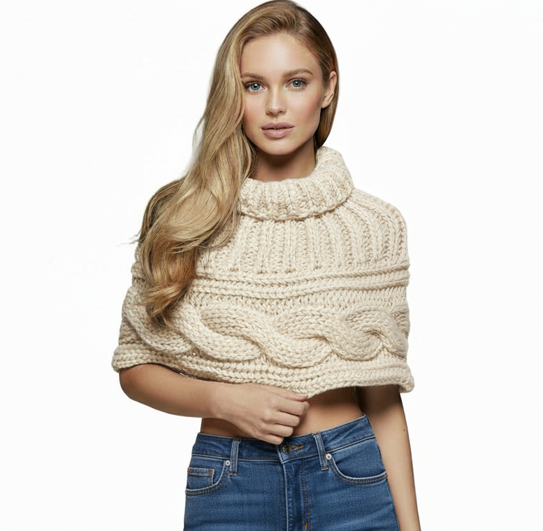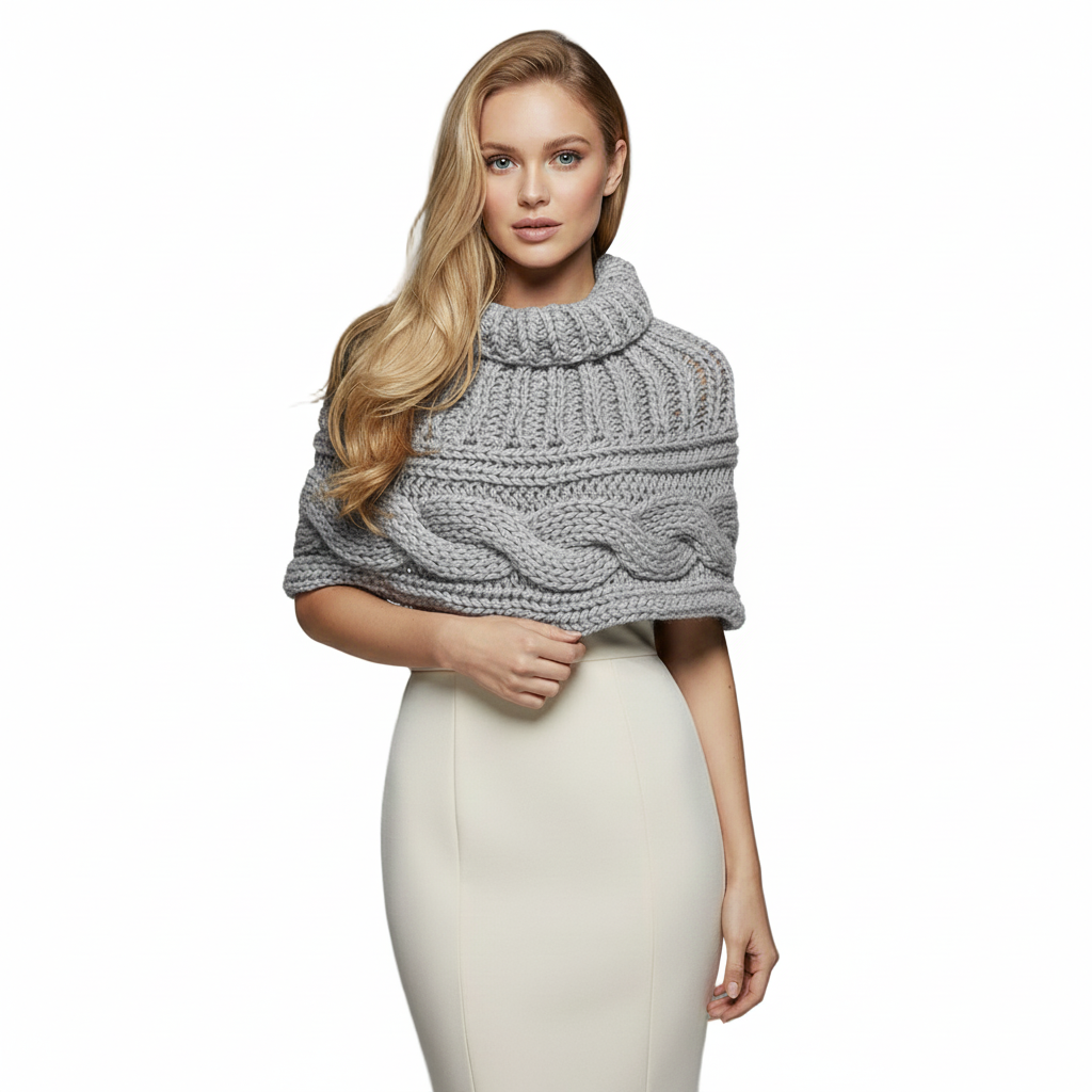Wool cape shrug, braid model and high collar. This accessory is perfect to wear easily over a dress, a shirt or even a coat or down jacket. It is handmade with a gorgeous soft wool blend yarn, available in two variations: roving or twisted, depending on yarn availability.