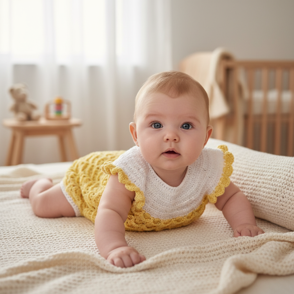 Newborn baby girl 100% cotton romper size 0-3 Yellow - handcrafted crochet