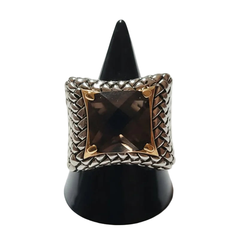 Questo anello donna dal design intrecciato è un perfetto equilibrio tra eleganza e carattere contemporaneo. L'intreccio nero crea un contrasto deciso con il metallo tono argento, dando vita a un gioco di texture e profondità che cattura lo sguardo.