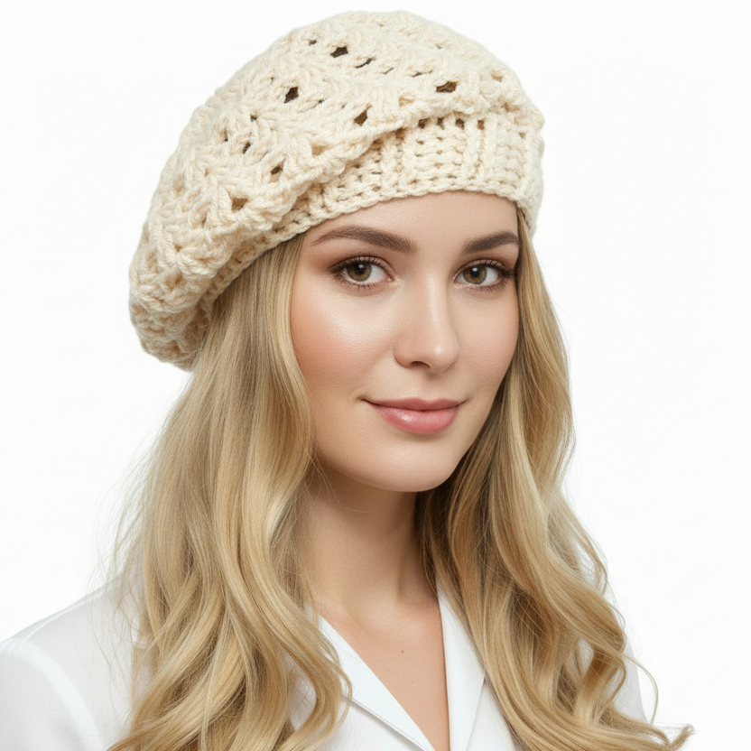 Basco Artigianale Uncinetto Donna - Berretto Fatto a Mano