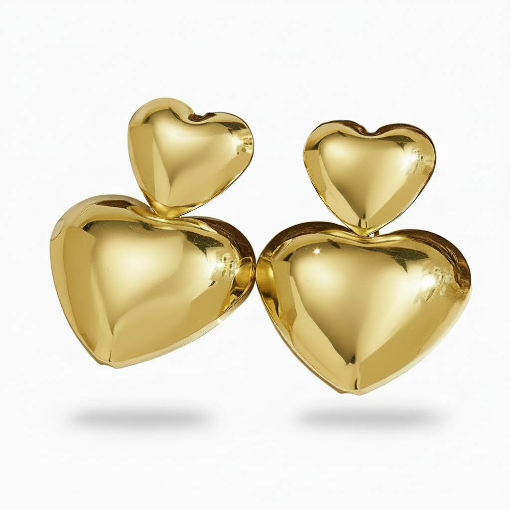 Scopri questi adorabili orecchini doppio cuore pouff in acciaio, perfetti per chi ama lo stile romantico e giocoso. Il design presenta due cuori sovrapposti con effetto tridimensionale pouff che crea volume e movimento, rendendo questi orecchini un accessorio davvero speciale e di tendenza.