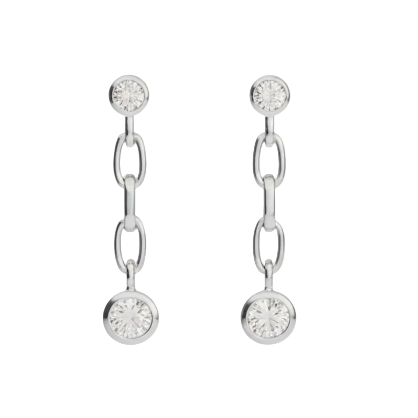 Questi orecchini pendenti in argento 925 rodiato sono impreziositi da zirconi bianchi rotondi che catturano la luce con ogni movimento. Il design raffinato e versatile li rende perfetti sia per il giorno che per la sera.